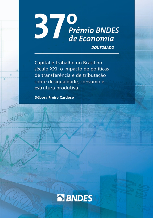Resumo: "Esta tese de doutorado em Economia, Capital e trabalho no Brasil no século XXI: o impacto de políticas de transferência e de tributação sobre desigualdade, consumo e estrutura produtiva, de Débora Freire Cardoso, ora editada pelo BNDES, obteve o primeiro lugar, na categoria Doutorado, no 37º Prêmio BNDES de Economia, realizado em 2017."